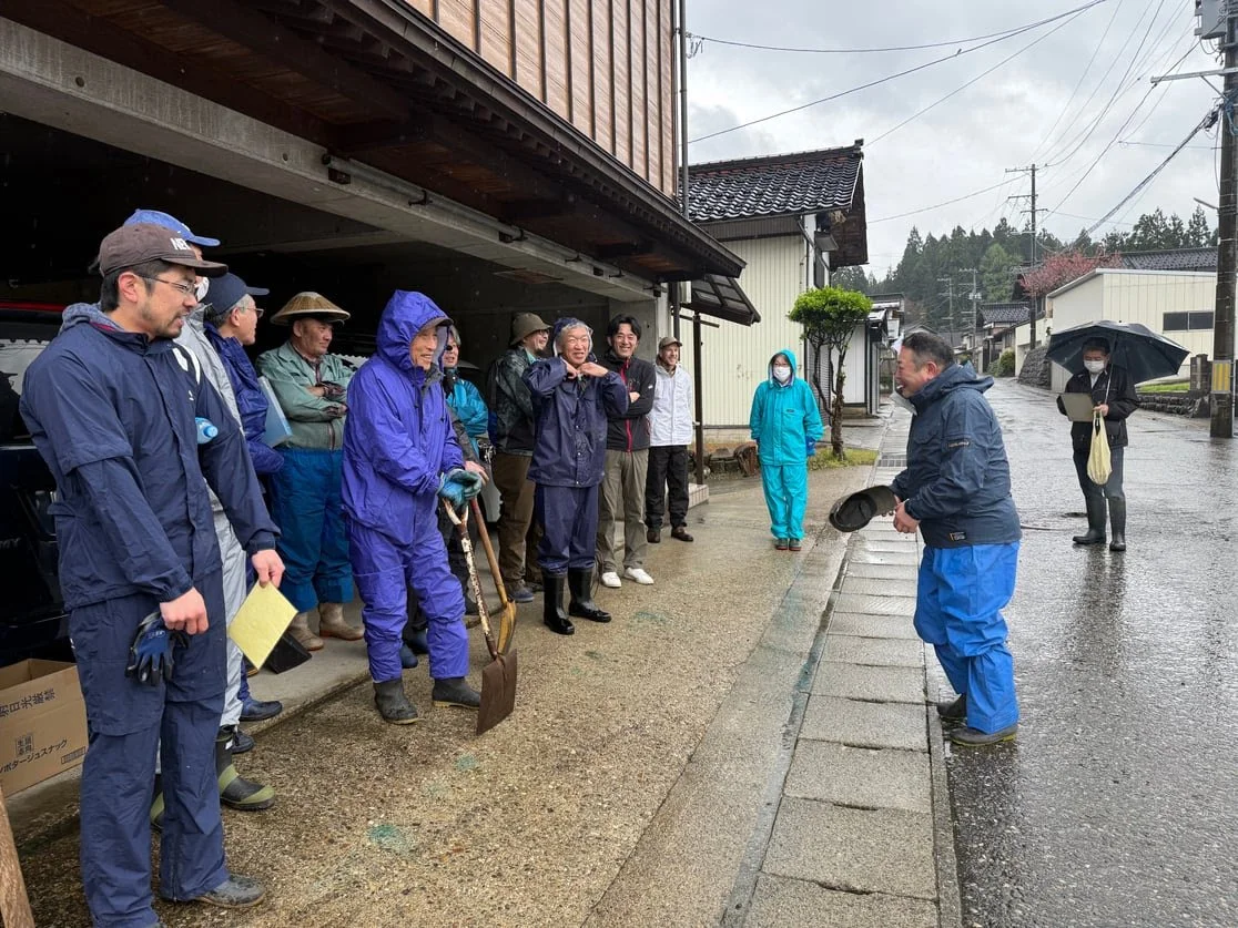 This year, six of us from the Yamabushido team joined our neighbors to sweep and clear the Sannosaka (third slope) area near Haniyamahime Shrine, the shrine known for its red ribbons. This event takes place rain or shine, much like yamabushi training, and this year was a particularly wet one.